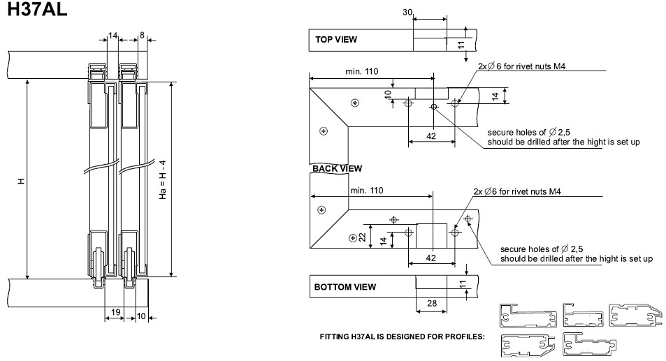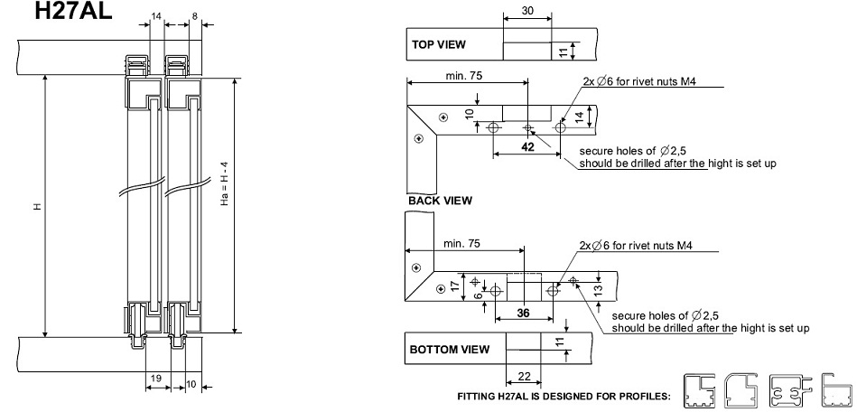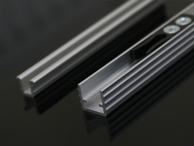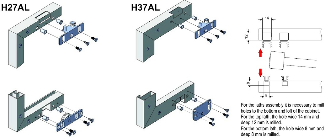 We designed our sliding systems specifically for aluminum frames and aluminum doors, with solutions for office, kitchen, bathroom and other cabinetry . This sturdy system has a maximum load of 59.5 lb (27 kg) or 81.6 lb (37 kg), depending on the model. Aluminum rails come in 6′ 67″ (2 m) and 9′ 10″ (3 m) length. Contains ball bearing set up.