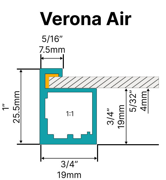 Verona Air: A narrow frame featuring a subtle face reveal, offering a sleek appearance.