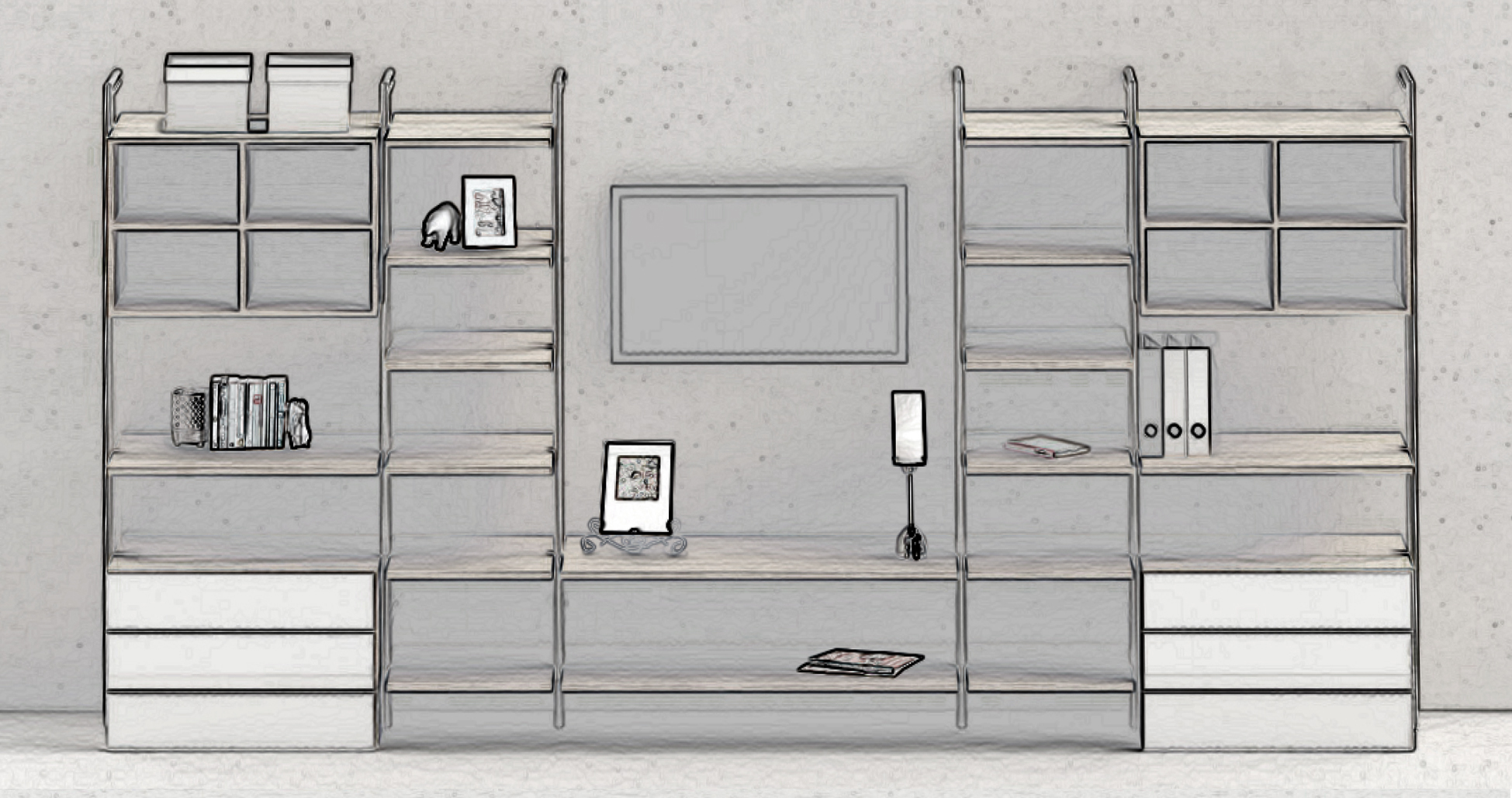 No furniture looks more charming, than a bookshelf full of books. Our system can become a distinctive piece in your living room with its minimalist design and unique solutions for all your books and decorative items.
