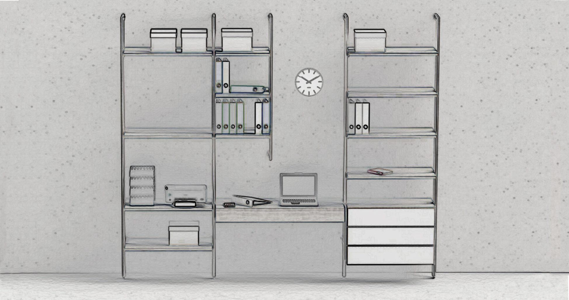 Every room, every space is unique, our loft solo intelligent shelving system will provide great flexibilityusung design and function, satisfying the highest demands in engineering as well as quality, creating a well organized space.