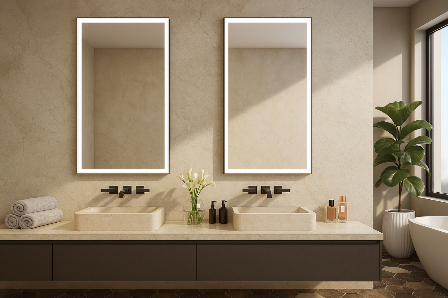 Our luxurious high-end mirrors will give your bathroom a new contemporary look. The clean lines of the aluminum frame will enhance your bathroom’s design by giving it a classic, yet timeless modern feel.
